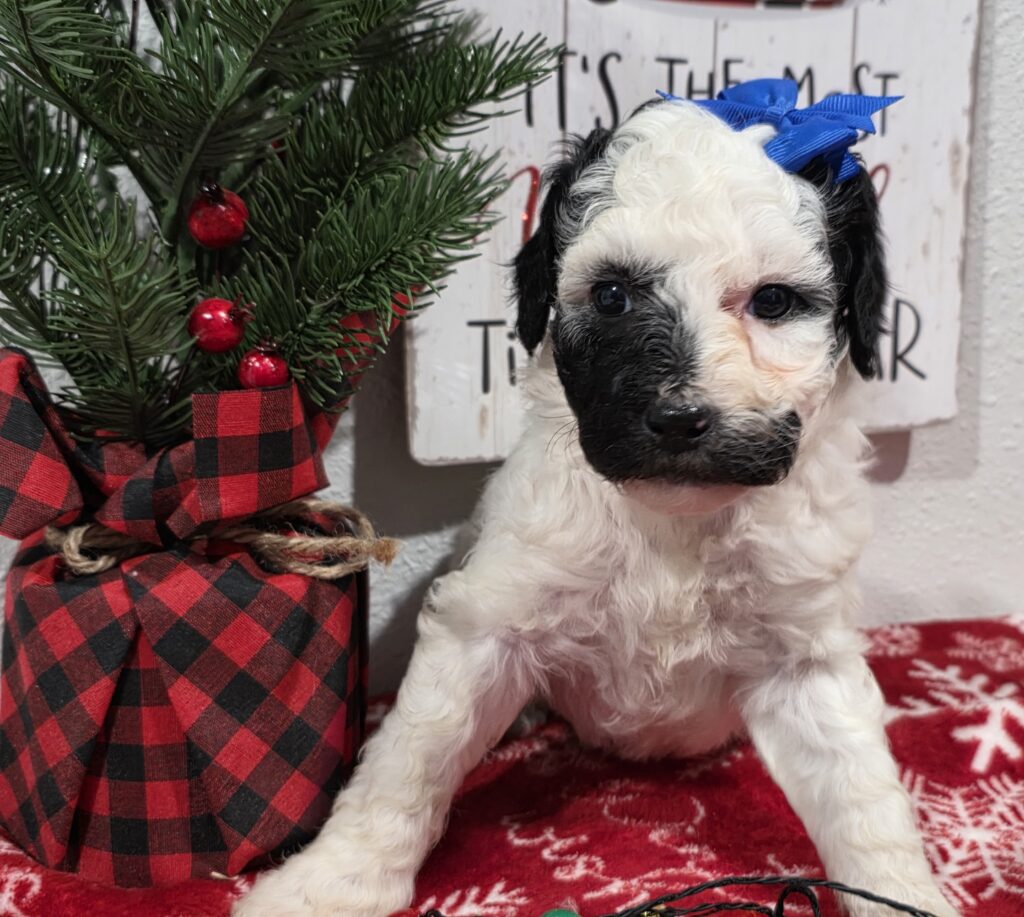 Adorable mini portidoodles available. Will be extensively socialized, started on potty and crate training, and goes home to you with health docs, health guarantee, health certificate, and puppy starter pkg. We have delivery options