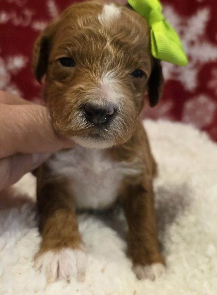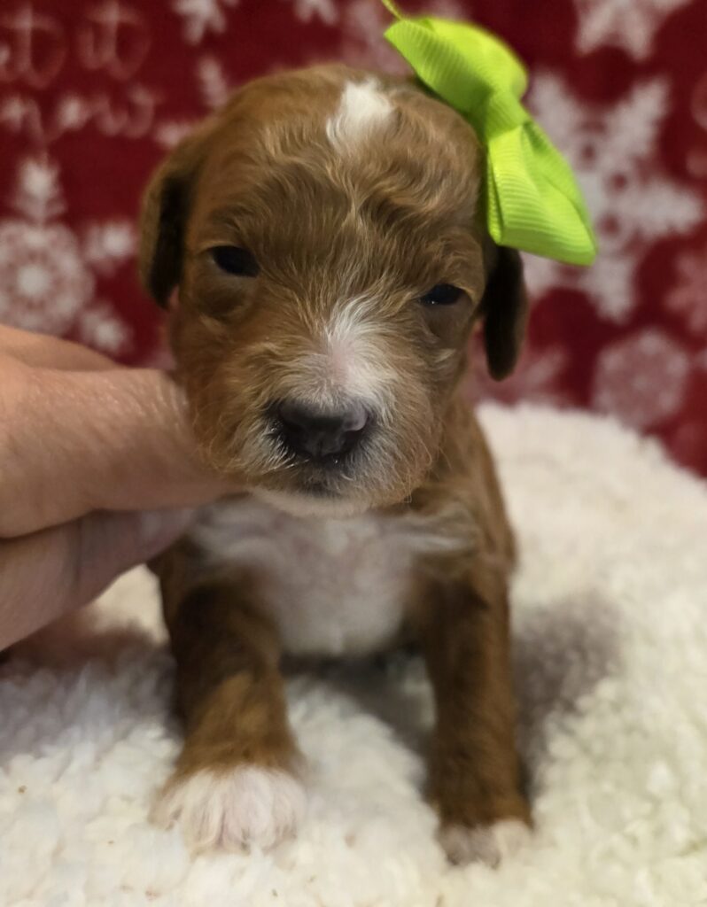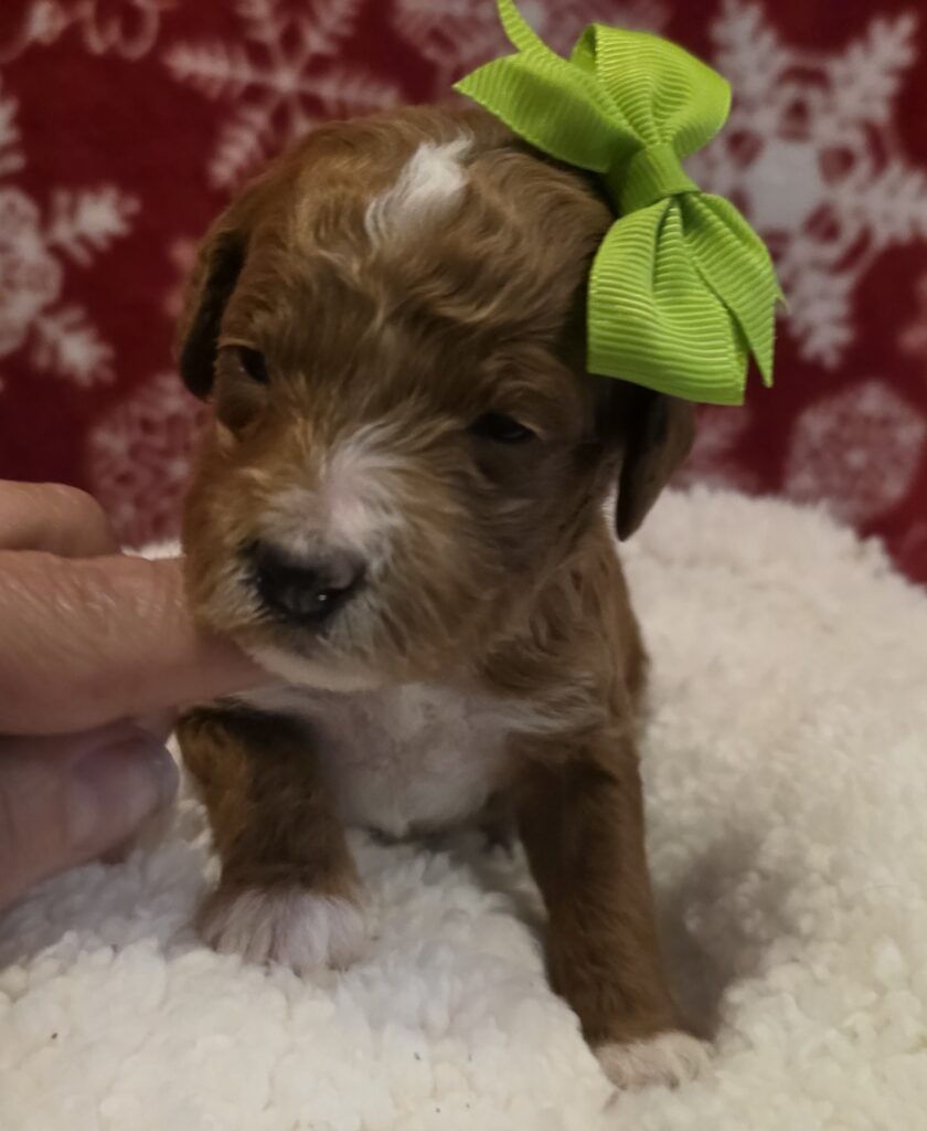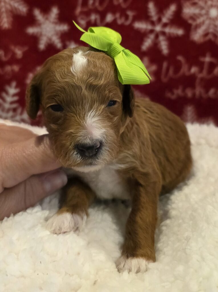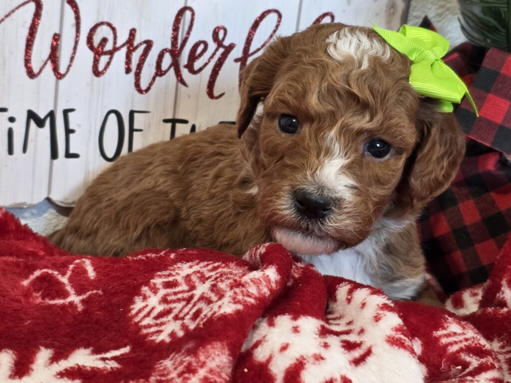Adorable mini Golden doodles available. Will be extensively socialized, started on potty and crate training, and goes home to you with health docs, health guarantee, health certificate, and puppy starter pkg. We have delivery optionsĀ