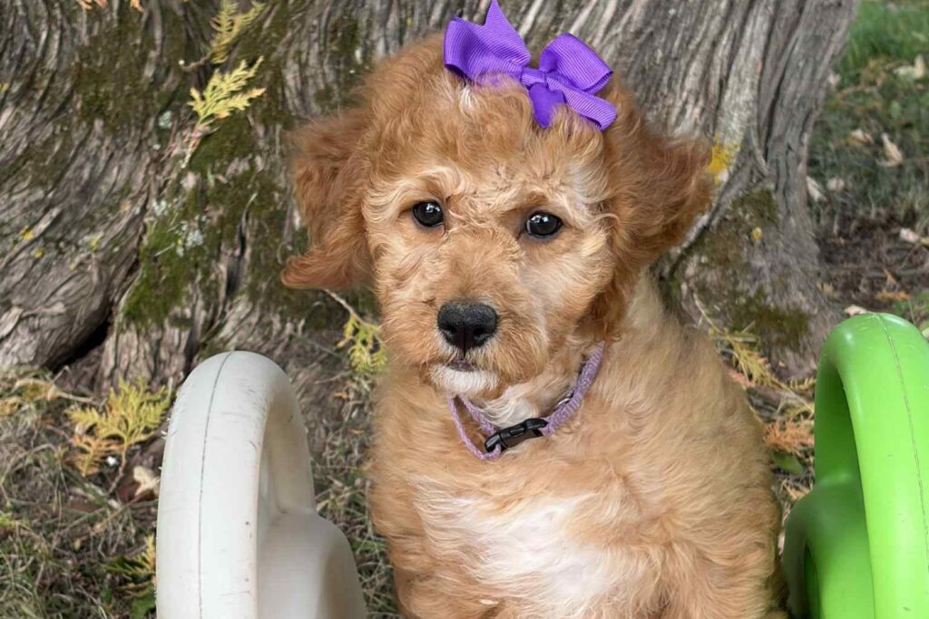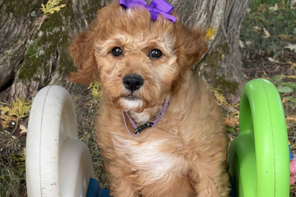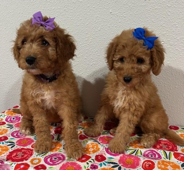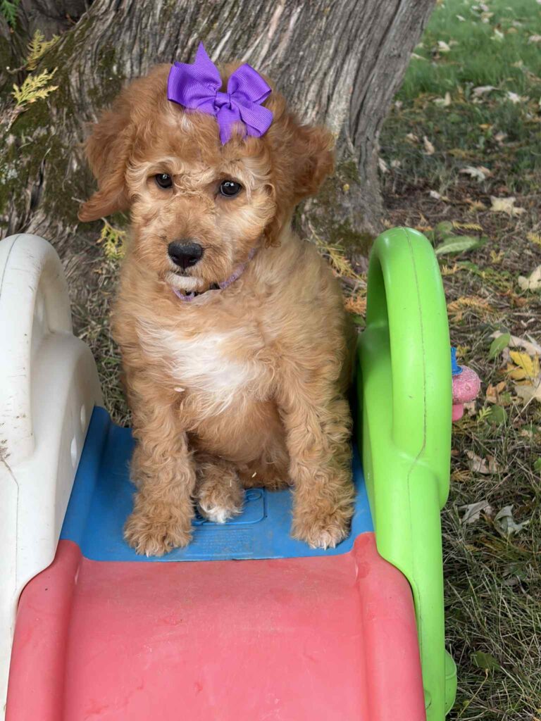 Adorable miniature Goldendoodle girls available. Will be extensively socialized, started on potty and crate training, and goes home to you with health docs, health guarantee, health certificate, and puppy starter pkg.