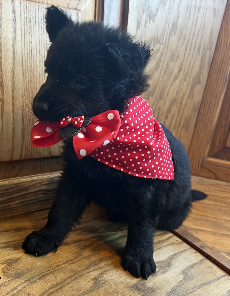 Minnie comes with some homemade food to get you started. She will have a baby blanket to help ease her transition. She will also have her paperwork to be registered with AKC.