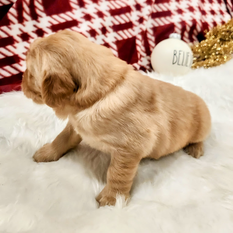 Say hello to Moose, he has a big personality and a bigger heart. This chunky boy has a playful spirit and endless wiggles! He’s been carefully bred with a deep focus on health and temperament, ensuring each pup grows into the loyal, gentle, and well-balanced companion this breed is known for. Every litter is born and raised inside our home, where puppies are surrounded by daily household life, loved-on from day one, and exposed to all the experiences that help shape confident, people-oriented dogs.