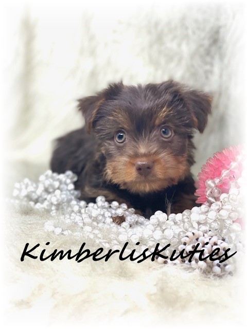 Phoebe is a gorgeous chocolate Morkie with a sweet personality and irresistible charm! She’s charting 6–7 ½ lbs. full grown (possibly smaller), making her a compact, petite companion.