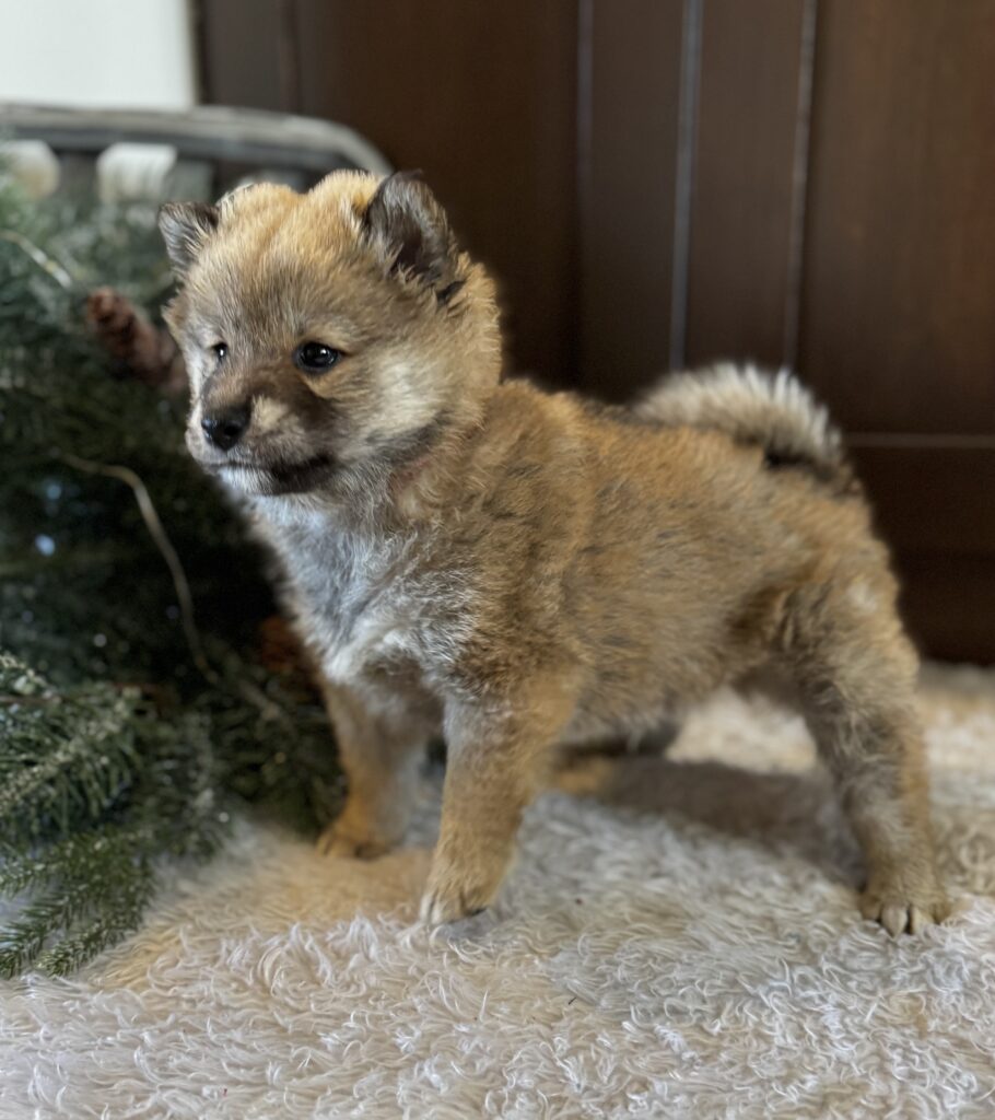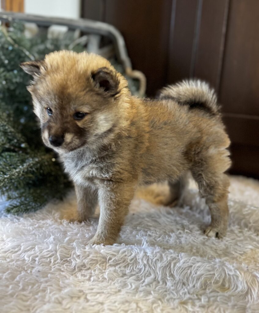 Nacho is a gorgeous “wooly” shiba – he has a beautiful fluffy haircoat. Our puppies are family raised and socialized. Nacho will be ready to leave November 25th and will come with APRI registration, vet exam and first puppy vaccinations/wormings. You can reserve this little boy with a $400 deposit. We accept paypal or venmo for payment. He can be picked up here in South Dakota or we do have delivery options available. Be sure to check out our website for more information or feel free to reach out to us directly!