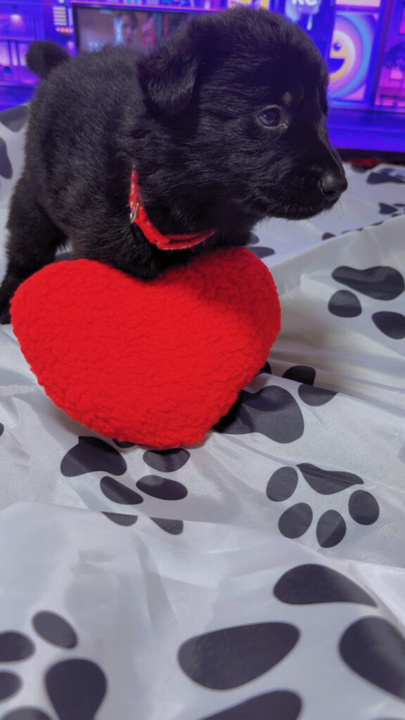 He will come with all of his paperwork, including his vaccination. He also come with a puppy gift baskets with toys and his blanket. 🐾