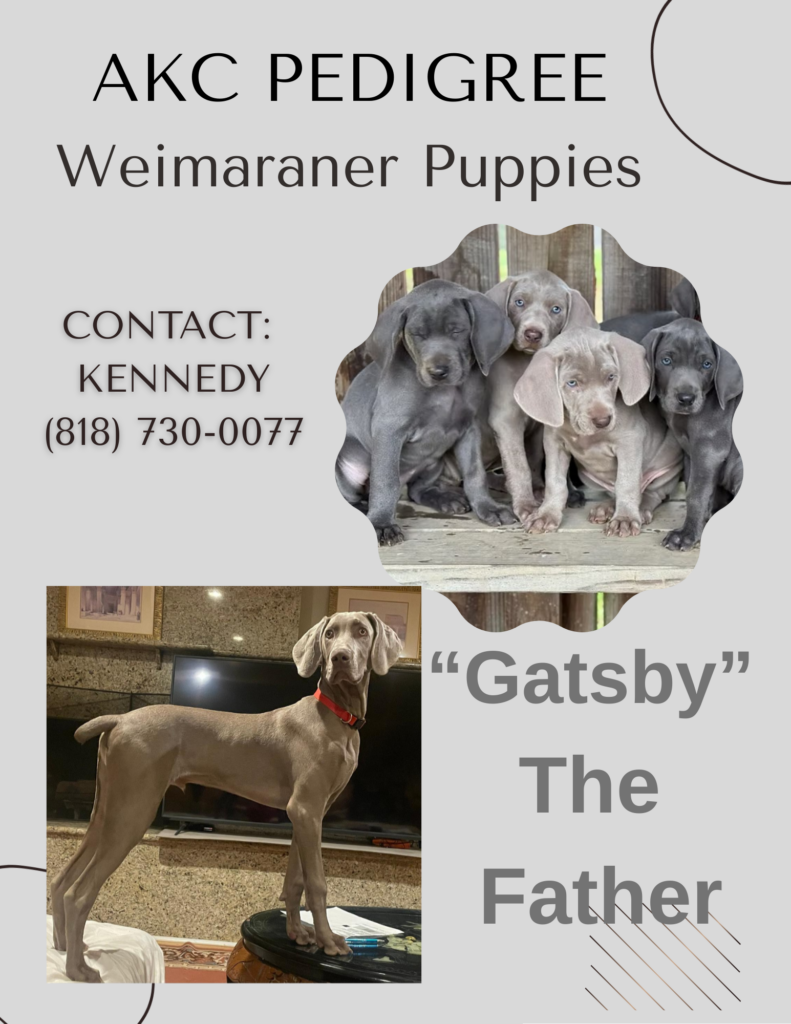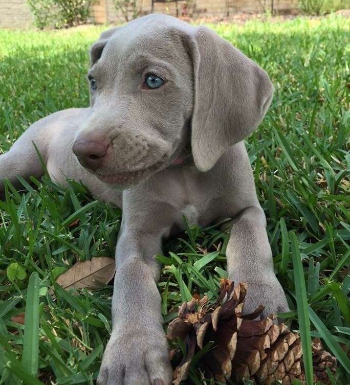 Patricia – is a beauty – a silver grey Weimaraner with bright blue eyes, alert, feisty and lots of love and kisses to give! AKC full registration available for a fee upon request.