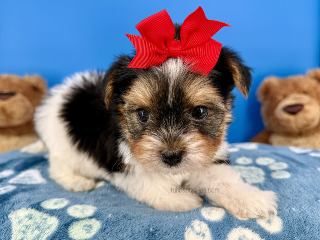 All of our puppies come with a 1 year health guarantee. They are up to date on shots and deworming and go home with a new puppy kit and new puppy care instructions. We start them on potty pads and many go home with the basics in potty training. We are always available to answer any questions and help you with your baby once you have them home. If you are interested in adopting this sweet boy, please visit our website to fill out an adoption questionnaire: https://tubbspuppies.com/puppies-for-sale/