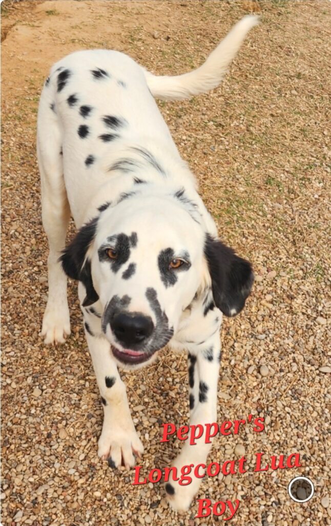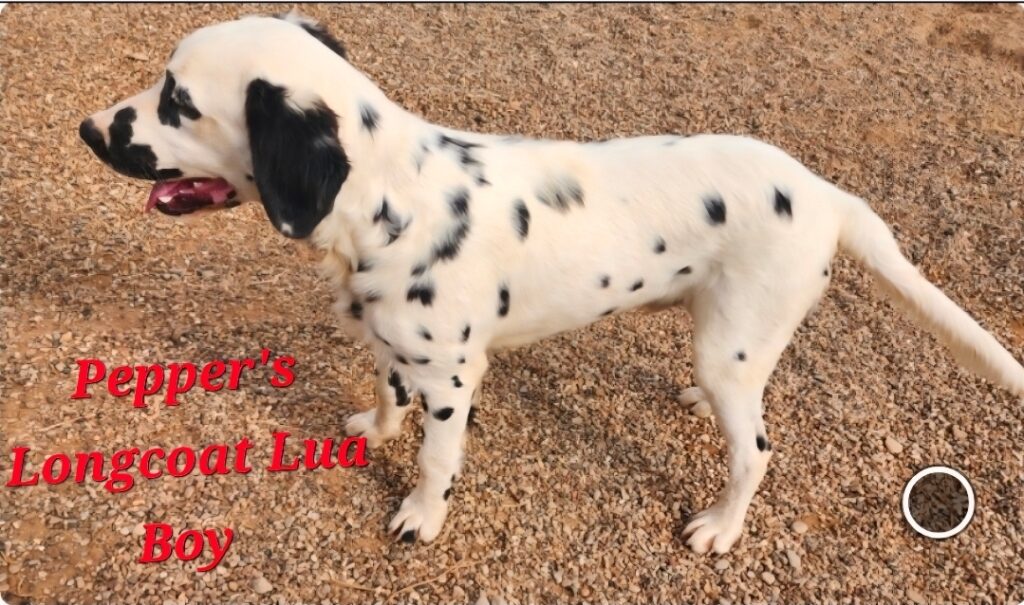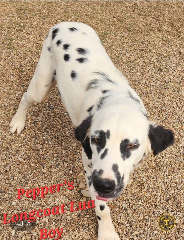 Comes with shot and deworming schedule-Neo Par shot given at two weeks of age, 1st puppy shot given by vet at six weeks check-up, has had all four puppy shots, dewormed every two weeks for three consecutive days beginning at two weeks of age with Panacur till 8wks then monthly, baer hearing test results-bi-lateral, hyperuricosuria test results-Lua, coat length test results-longcoat. Canton, Tx. Firewife Puppies