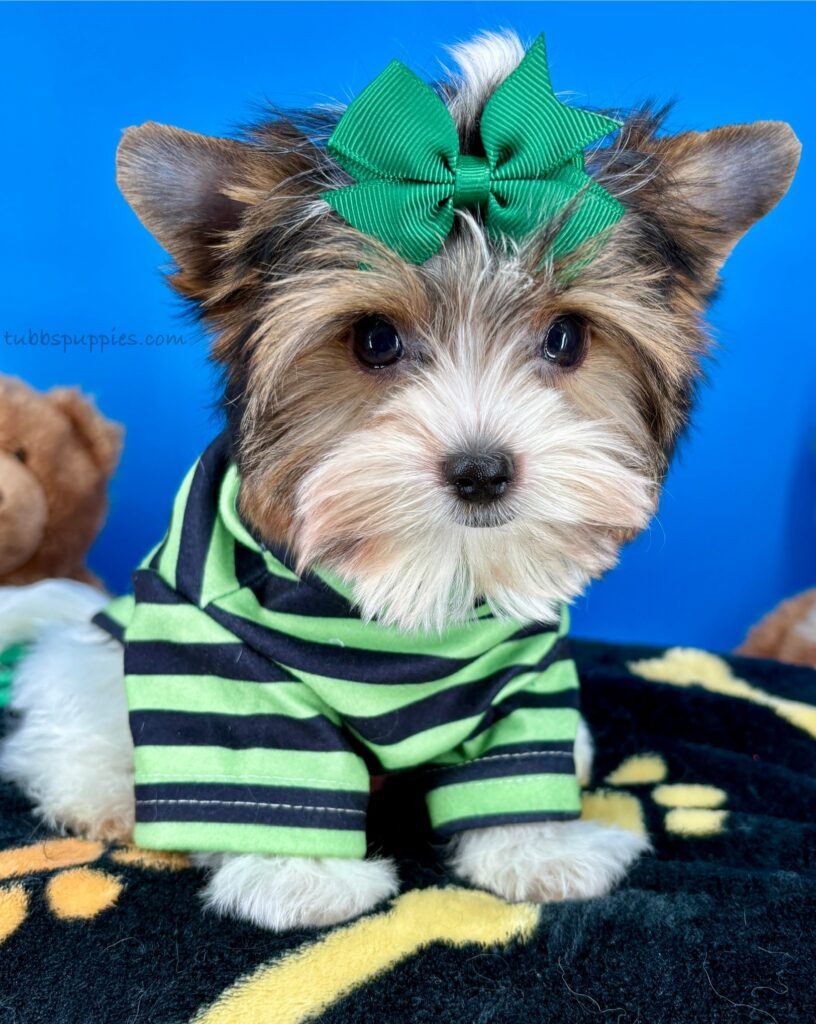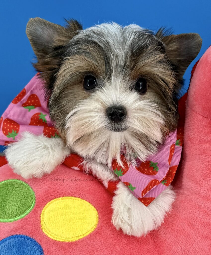 All of our puppies come with a 1 year health guarantee. They are up to date on shots and deworming and go home with a new puppy kit and new puppy care instructions. We start them on potty pads and many go home with the basics in potty training. We are always available to answer any questions and help you with your baby once you have them home. If you are interested in adopting this sweet boy, please visit our website to fill out an adoption questionnaire: https://tubbspuppies.com/puppies-for-sale/