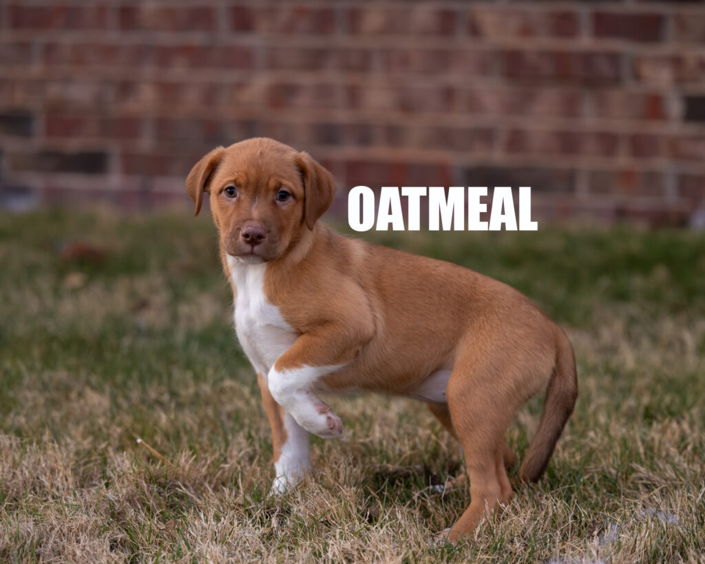 Pitbull Catahoula mix. She is 10 weeks old and from a litter of 10. She is very sweet, mild-mannered, potty pad trained, but we are currently working on getting her house trained. She has been in a kennel and does well, but isn’t fully kennel-trained yet. She and her brother Teddi are the only twins from the litter, and her eyes are absolutely gorgeous! I will mention that Oatmeal and Teddi are a little attached, like most twins, and I would consider a price reduction if both are purchased together and going to the same home.Â