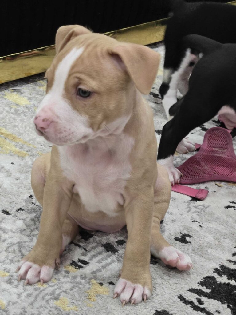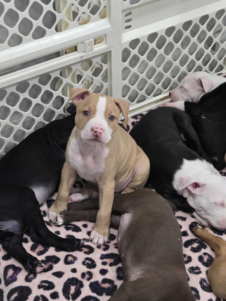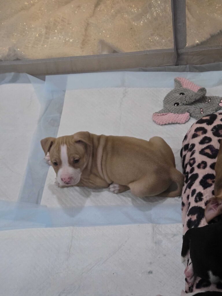 This princess is a staffordshire and pitbull mix. She is energetic but also loves to snuggle. She would be great with families. She is tan with white patches, white paws, and gray eyes. I have videos as well.