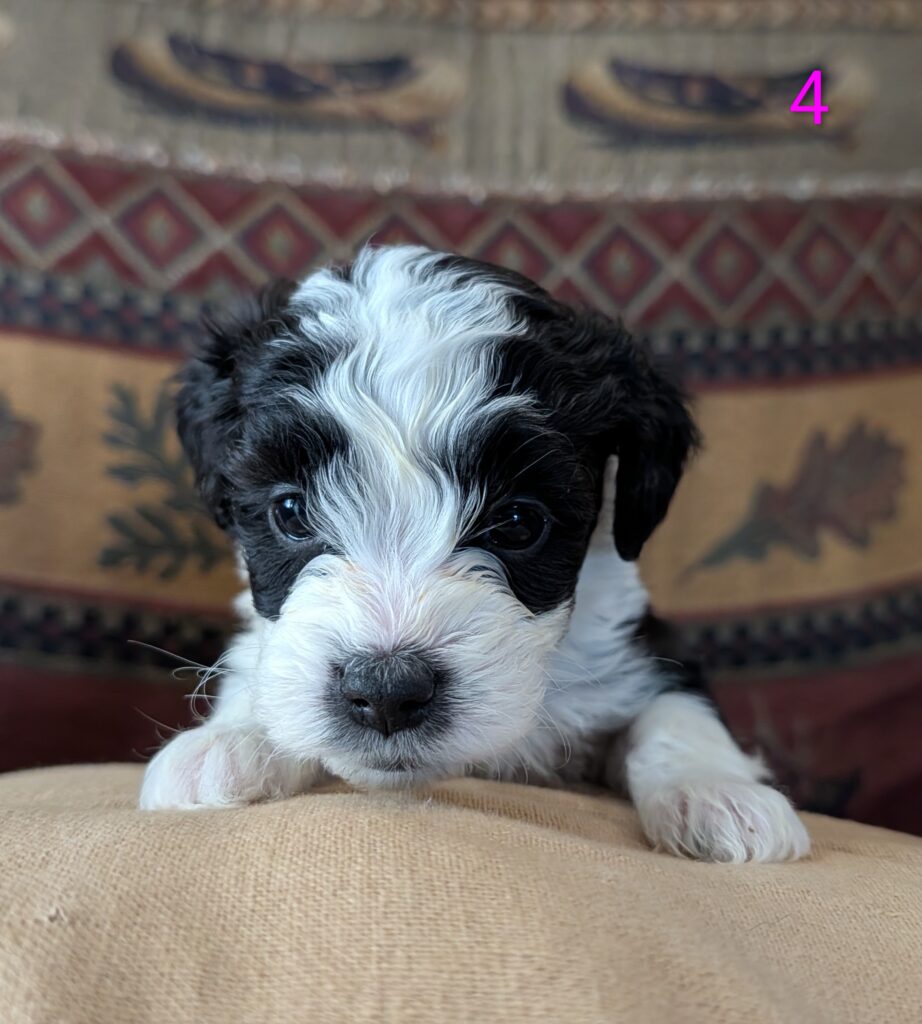 Dad is AKC registered Miniature Parti Poodle 19 lbs.
