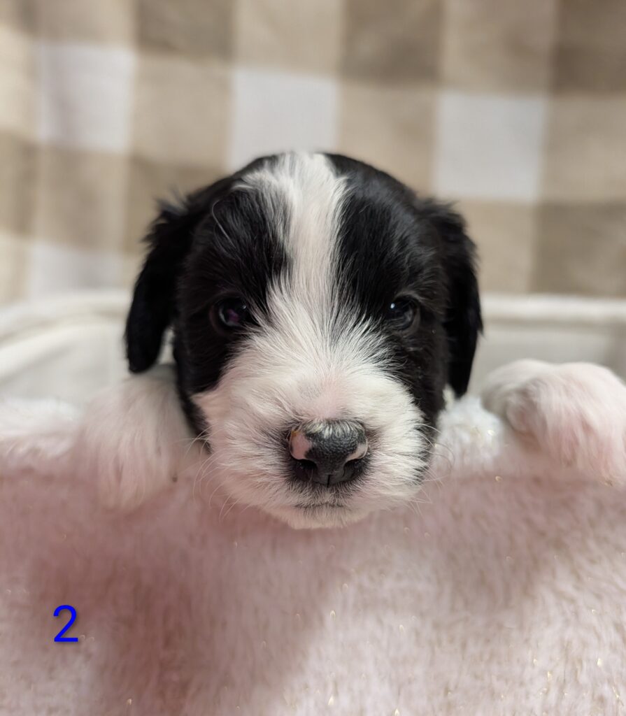 Dad is AKC registered Miniature Parti Poodle 19 lbs.