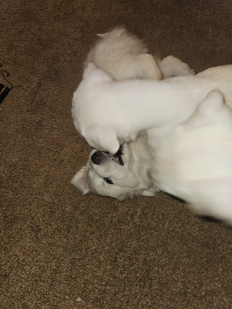 Have 5 females and 2 males. Dad cream retriever and mom husky lab mix. 8 weeks old now no shots yet. Looking for loving home for pups
