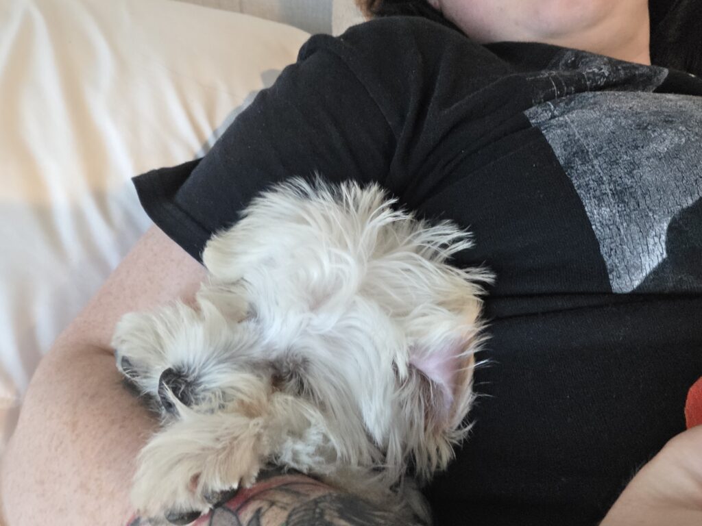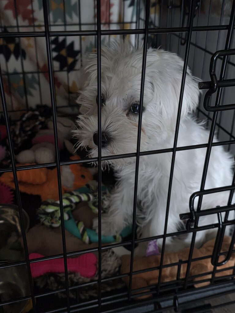 She’s gorgeous and super adorable, and she loves everybody.She is not aggressive but she loves to chew because of her age.