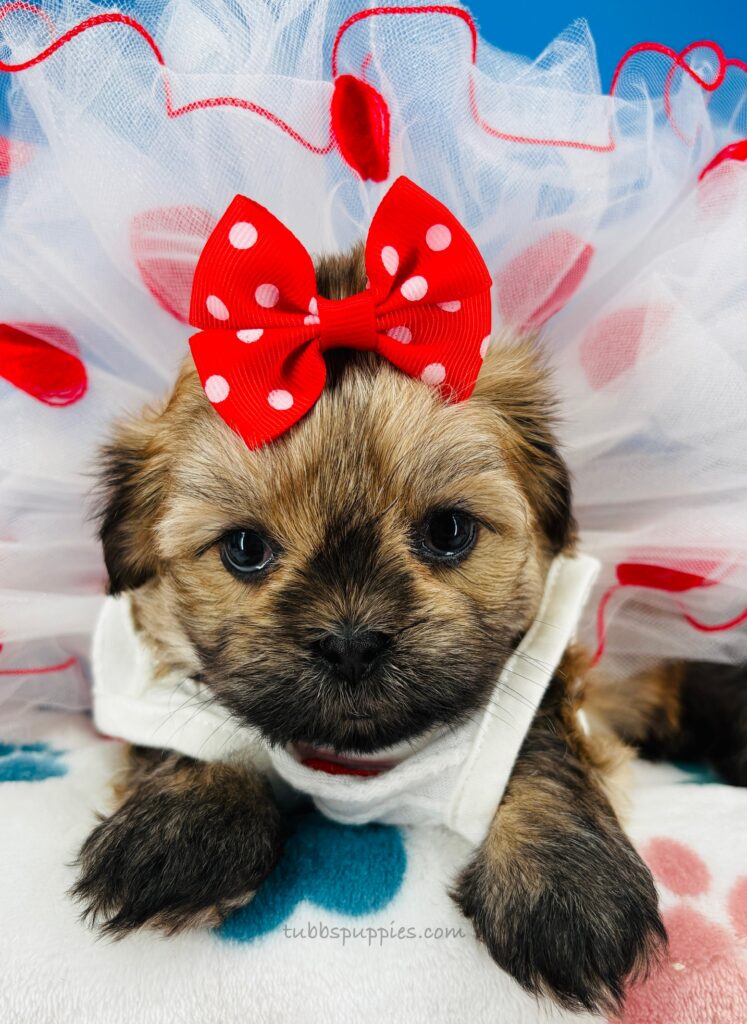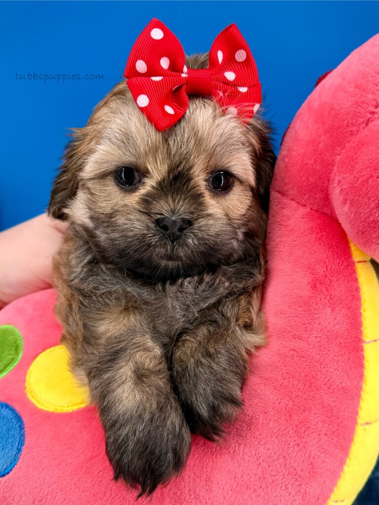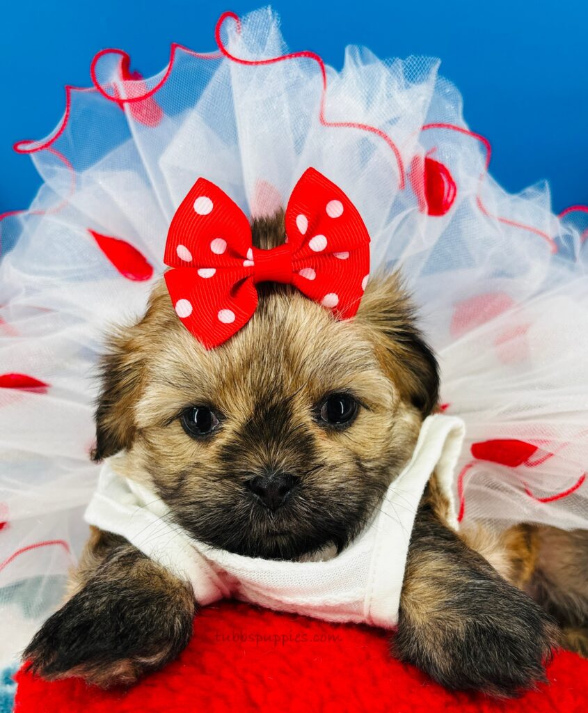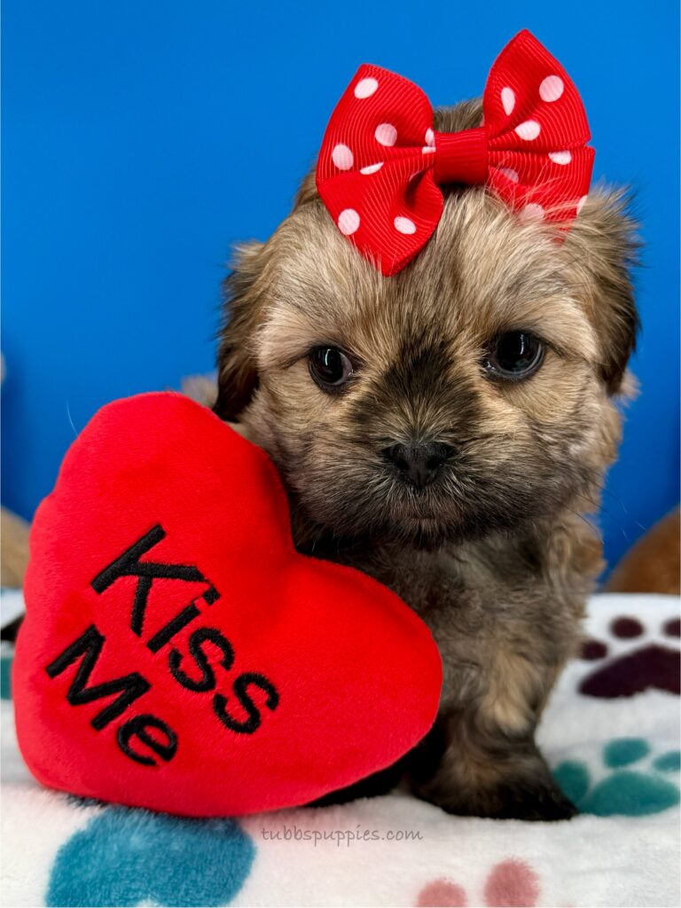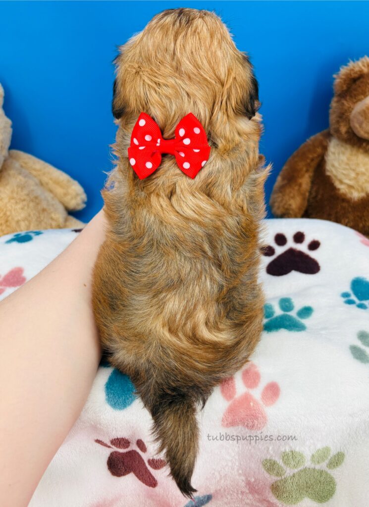 All of our puppies come with a 1 year health guarantee. They are up to date on shots and deworming and go home with a new puppy kit and new puppy care instructions. We start them on potty pads and many go home with the basics in potty training. We are always available to answer any questions and help you with your baby once you have them home. If you are interested in this sweet girl, please visit our website to fill out a questionnaire: https://tubbspuppies.com/puppies-for-sale/