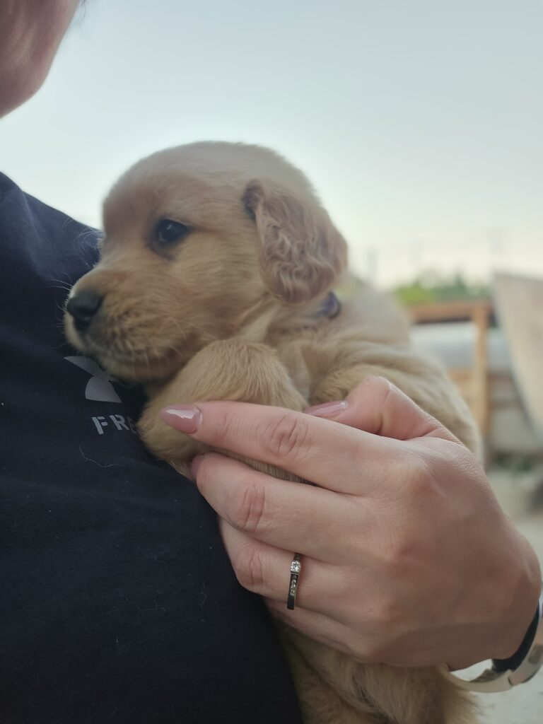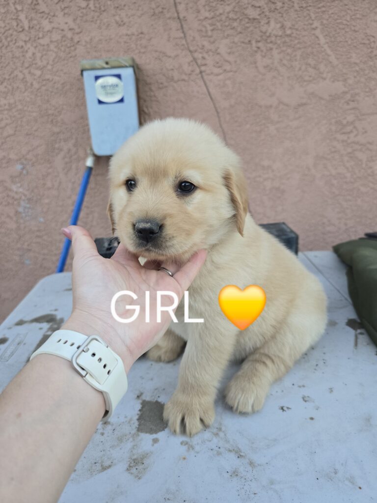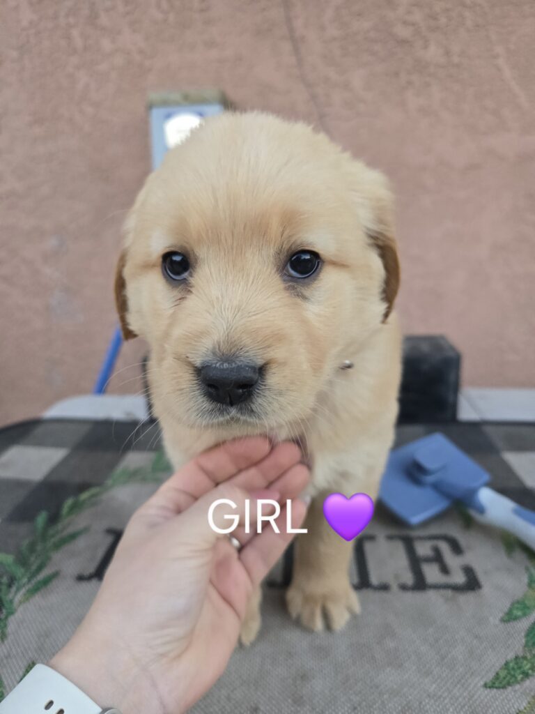 3 female golden retriever puppies looking for loving homes. They are 8 weeks old, active, and affectionate.