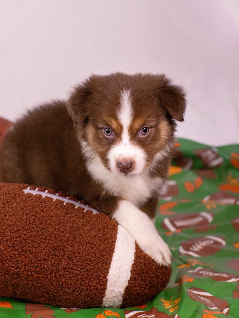 Estimated maturity size 40-50 lbs. She has beautiful red tri markings. She is up to date on vaccinations and deworming, has started with early socialization, and is AKC eligible.