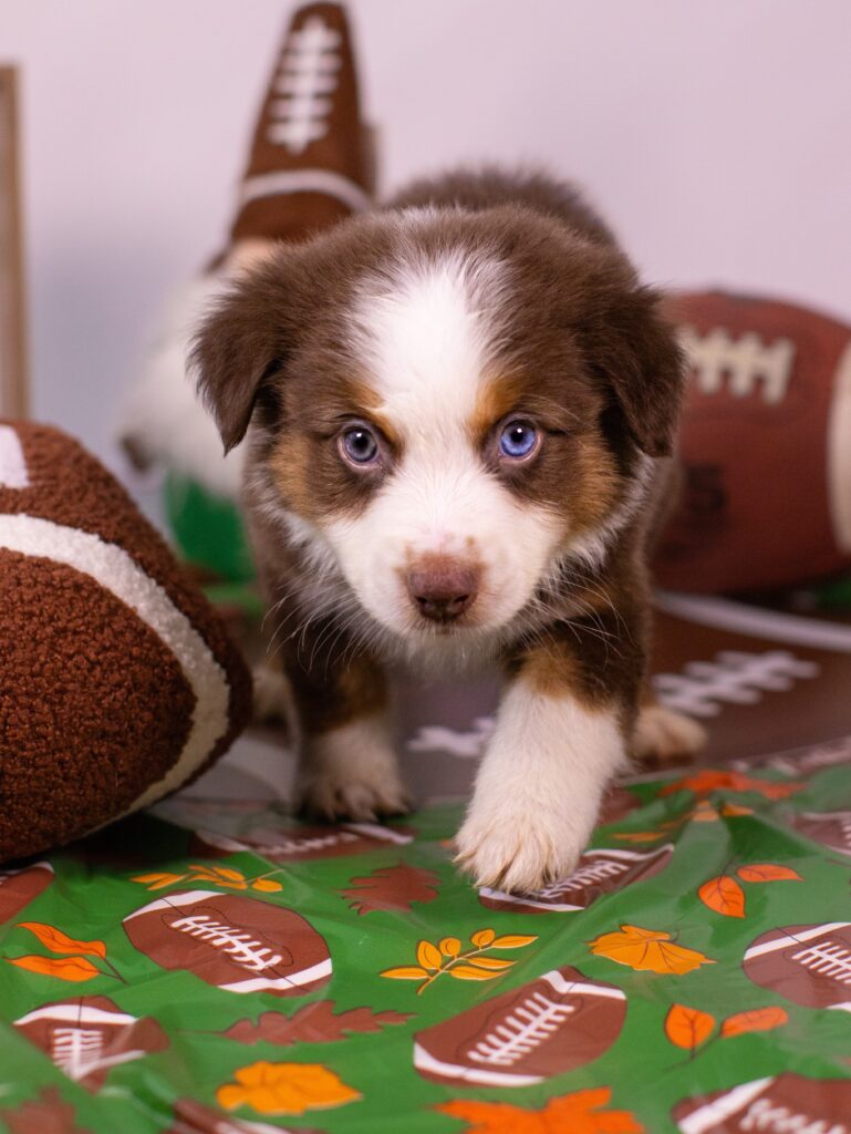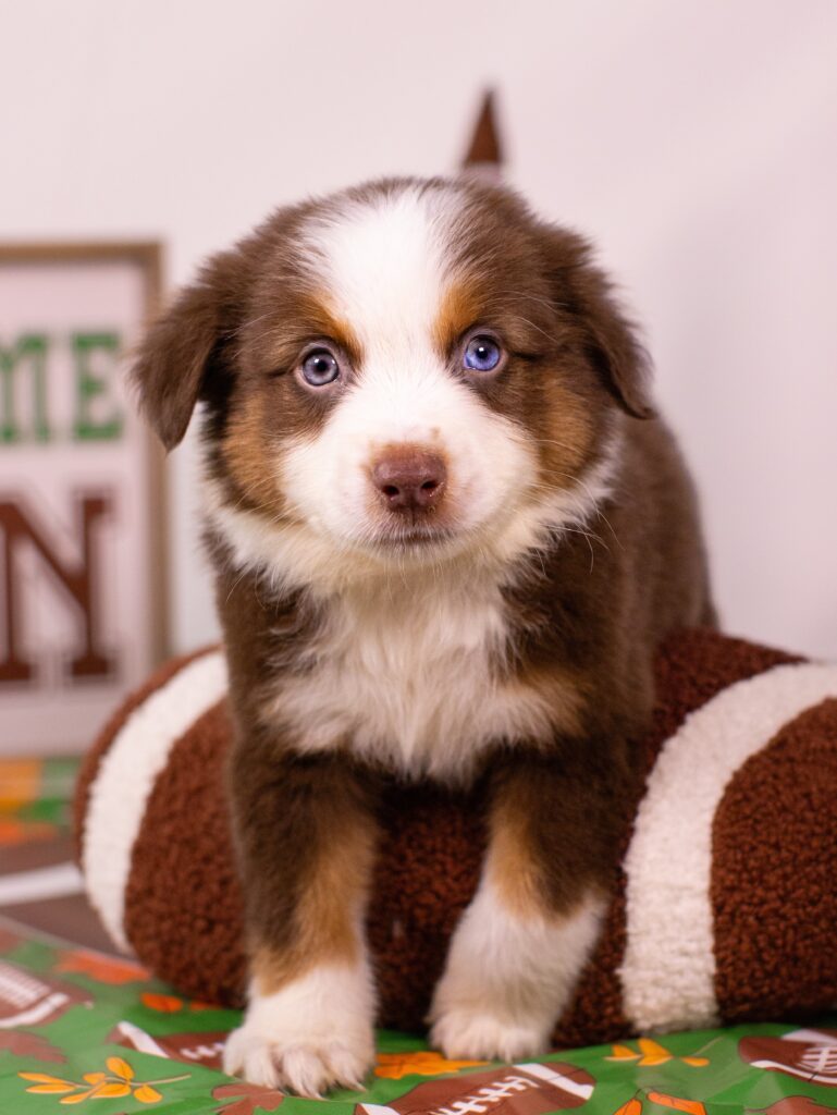Estimated maturity size 40-50 lbs. He has bold red tri markings. He is up to date on vaccinations and deworming, has started with early socialization, and is AKC eligible.