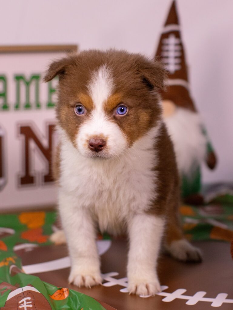 Estimated maturity size 40-50 lbs. He has beautiful red tri markings. He is up to date on vaccinations and deworming, has started with early socialization, and is AKC eligible.