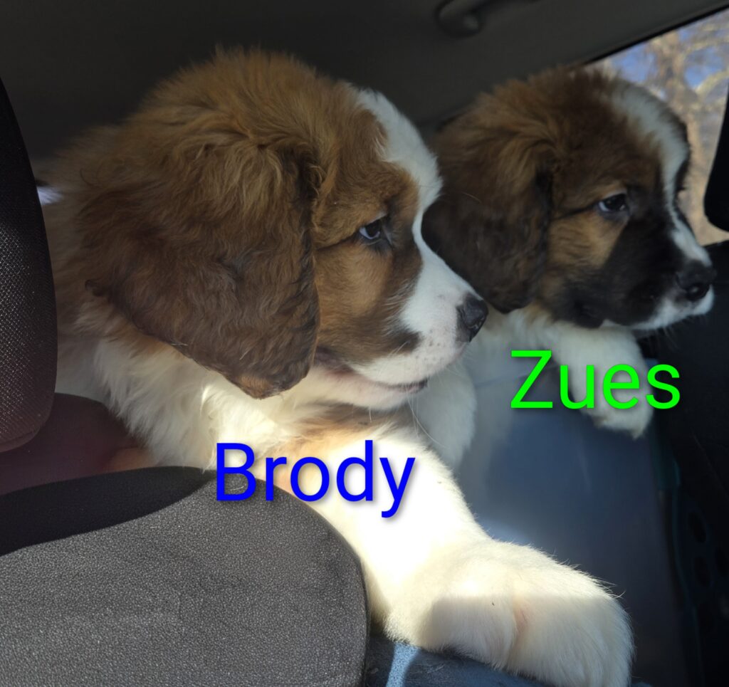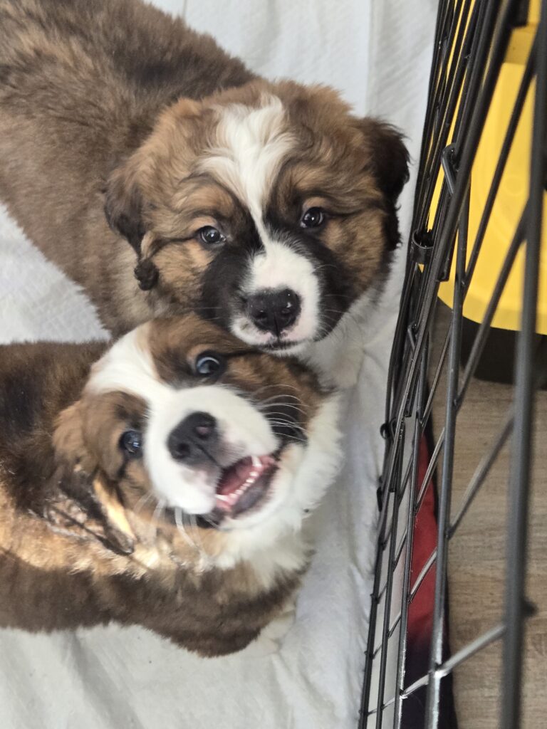 Saint Bernese pups! Born on December 10th, these “Designer Breed” hybrids combine the loyal, gentle nature of the Saint Bernard with the playful, devoted spirit of the Bernese Mountain Dog.​