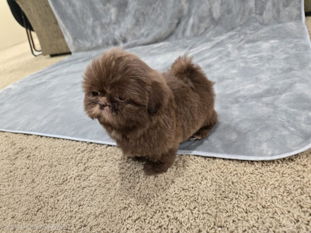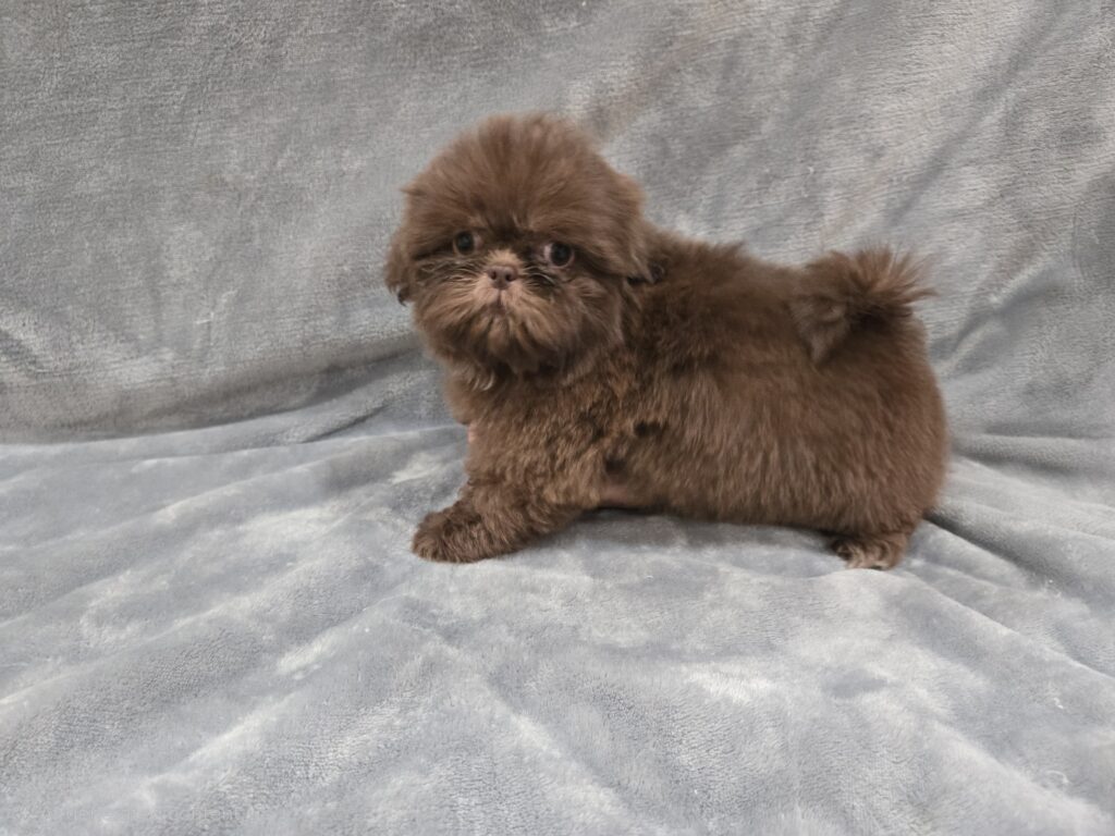 Looking for a pup that’s as unique as he is adorable? Say hello to Alf, our precious liver-colored male Shih Tzu – a true gem in the puppy world! Liver coloring is one of the rarest and most sought-after Shih Tzu shades, and Alf wears it like royalty. Loves people and wants nothing more than to sit on your lap.