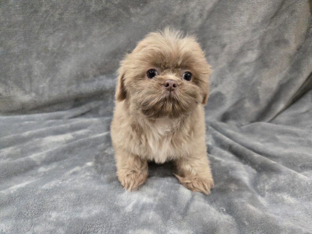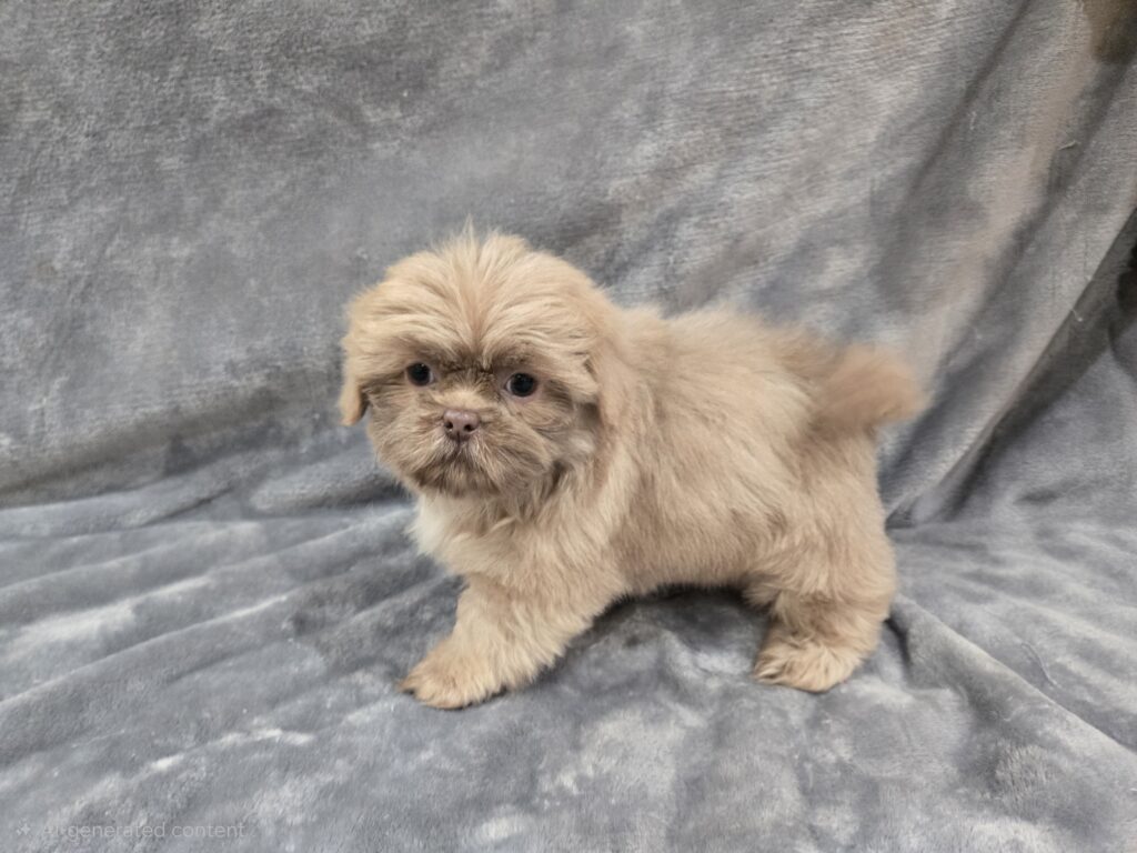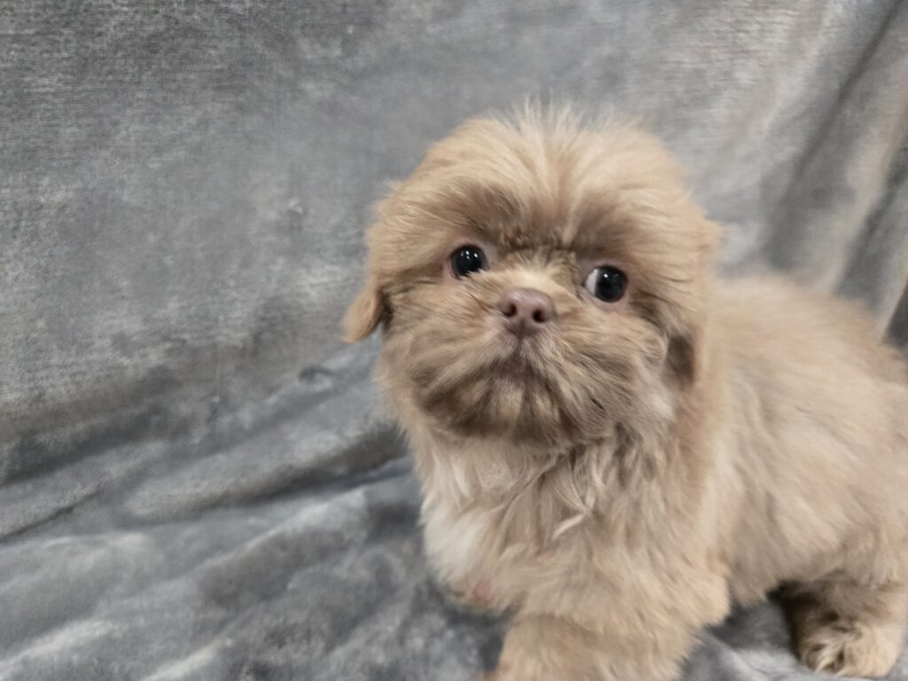 Say hello to Chewie, the lilac-colored prince of the litter! With his dreamy pastel coat and gentle eyes, Chewie is a rare find – lilac Shih Tzus are exceptionally hard to come by, and this boy is pure magic. Chewie’s personality is just as special as his coloring: mellow, affectionate, and always ready for a cuddle. He’s the kind of pup who’ll follow you from room to room, tail wagging and heart glowing. Whether you’re looking for a lap warmer or a loyal little sidekick, Chewie’s your guy. **He does have a small umbilical hernia that will not affect his health***