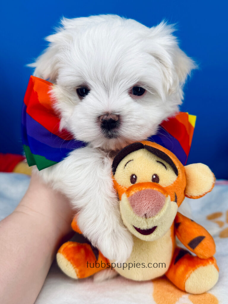 All of our puppies come with a 1 year health guarantee. They are up to date on shots and deworming and go home with a new puppy kit and new puppy care instructions. We start them on potty pads and many go home with the basics in potty training. We are always available to answer any questions and help you with your baby once you have them home. If you are interested in this sweet boy, please visit our website to fill out a questionnaire: https://tubbspuppies.com/puppies-for-sale/