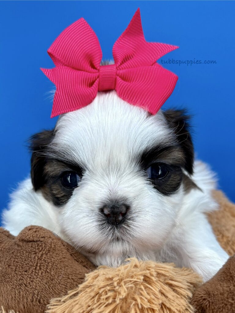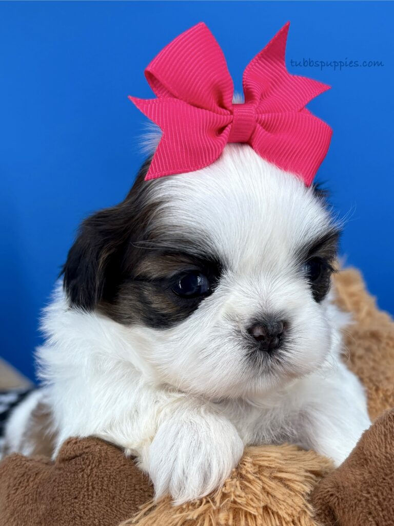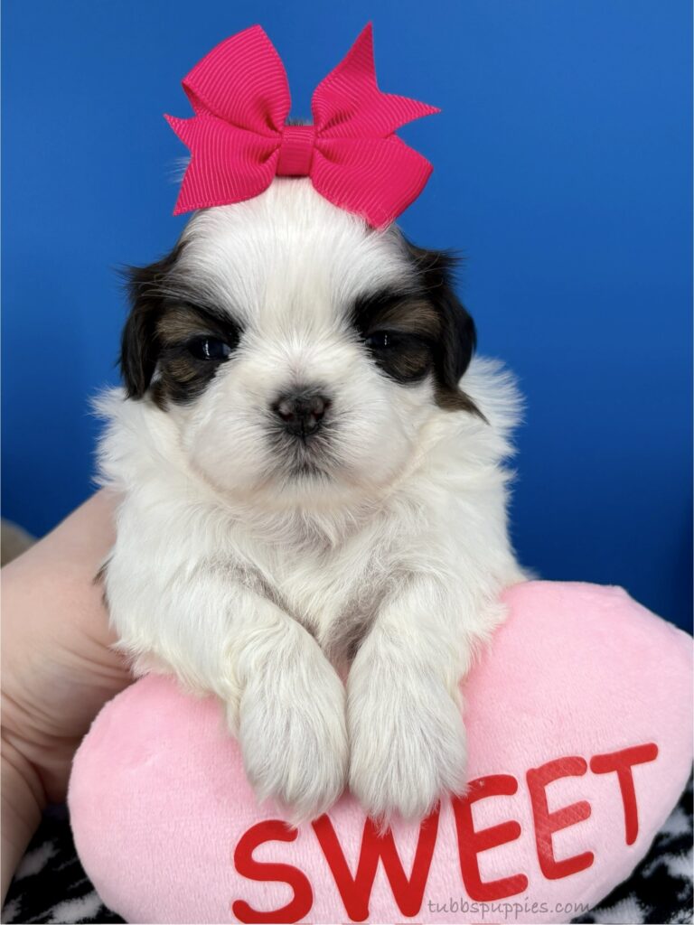 All of our puppies come with a 1 year health guarantee. They are up to date on shots and deworming and go home with a new puppy kit and new puppy care instructions. We start them on potty pads and many go home with the basics in potty training. We are always available to answer any questions and help you with your baby once you have them home. If you are interested in this sweet girl, please visit our website to fill out a questionnaire: https://tubbspuppies.com/puppies-for-sale/