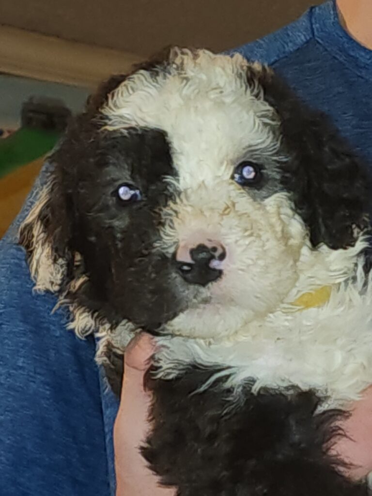 Littlest guy of the bunch. Even though he is little he is fierce. He was the first to walk, bark, eat, and learn how to go down stairs. He is smart and loves to play with toys. Like all others will come home prespolied. Raised in our home in the country. Exposed to cows, horses,cats and other dogs.
