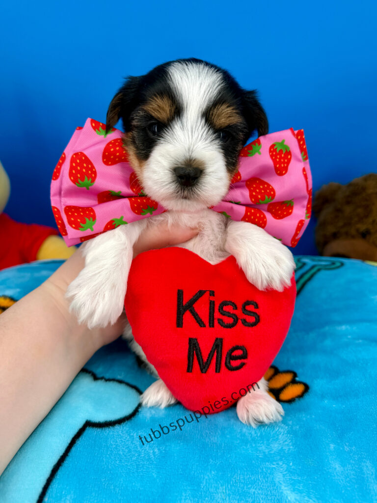 All of our puppies come with a 1 year health guarantee. They are up to date on shots and deworming and go home with a new puppy kit and new puppy care instructions. We start them on potty pads and many go home with the basics in potty training. We are always available to answer any questions and help you with your baby once you have them home. If you are interested in this sweet boy, please visit our website to fill out a questionnaire: https://tubbspuppies.com/puppies-for-sale/