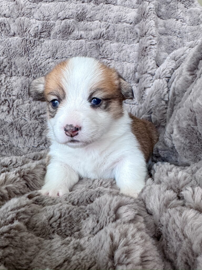 Petal is the gentle sweetheart of the litter — soft‑natured, snuggly, and always ready to melt into your arms. She’s the puppy who watches the world with big curious eyes before hopping in with her own adorable enthusiasm. With her calm charm and cuddly personality, Petal is the kind of corgi who makes every moment feel a little softer and a lot sweeter.