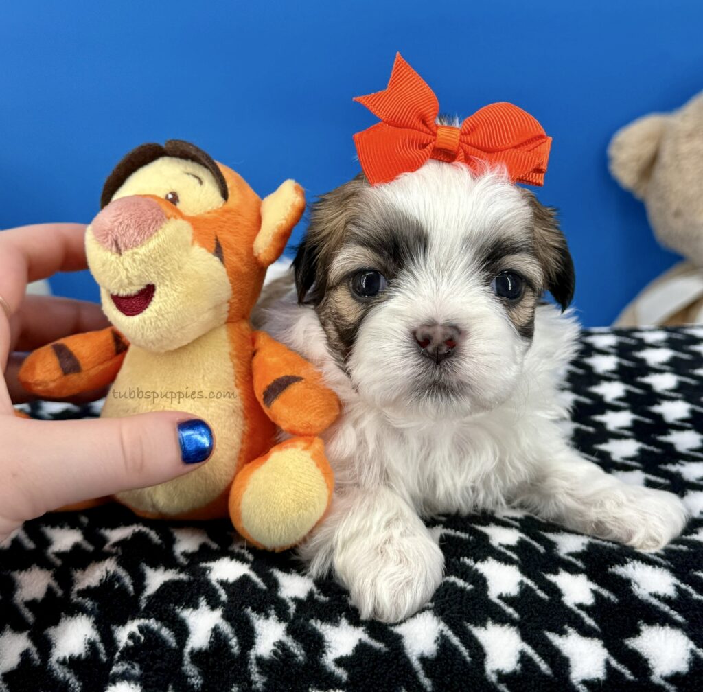 All of our puppies come with a 1 year health guarantee. They are up to date on shots and deworming and go home with a new puppy kit and new puppy care instructions. We start them on potty pads and many go home with the basics in potty training. We are always available to answer any questions and help you with your baby once you have them home. If you are interested in this sweet boy, please visit our website to fill out a questionnaire: https://tubbspuppies.com/puppies-for-sale/