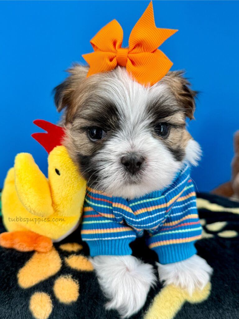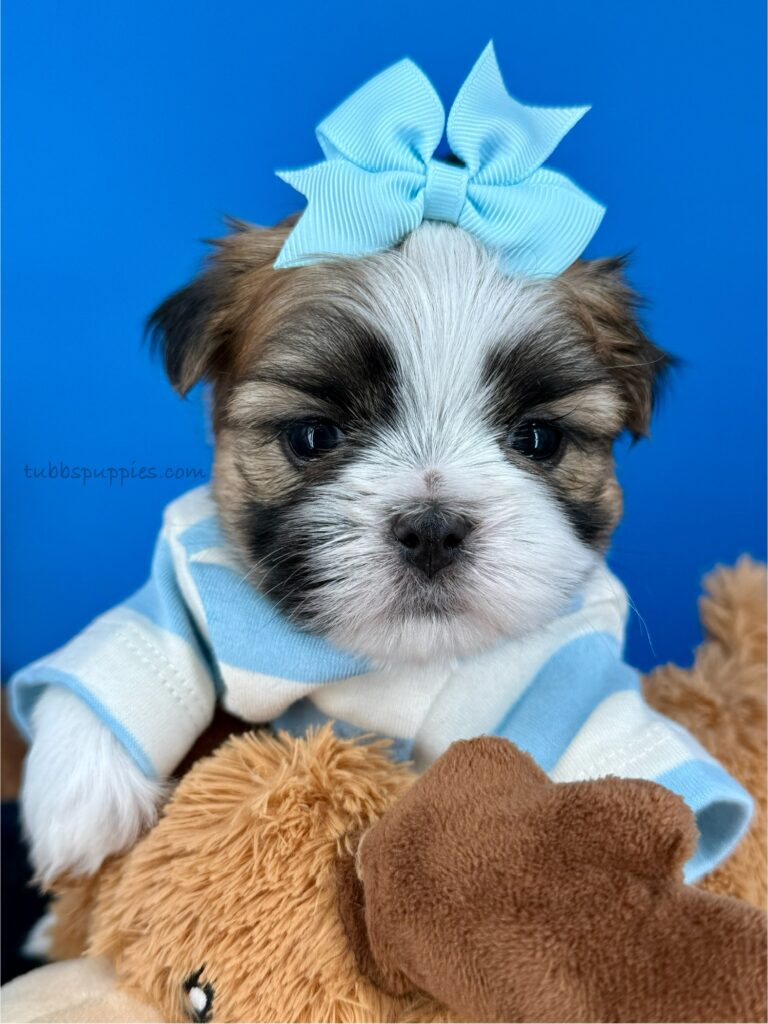 All of our puppies come with a 1 year health guarantee. They are up to date on shots and deworming and go home with a new puppy kit and new puppy care instructions. We start them on potty pads and many go home with the basics in potty training. We are always available to answer any questions and help you with your baby once you have them home. If you are interested in this sweet boy, please visit our website to fill out a questionnaire: https://tubbspuppies.com/puppies-for-sale/