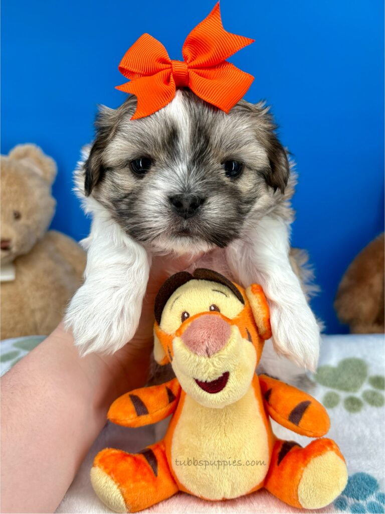 All of our puppies come with a 1 year health guarantee. They are up to date on shots and deworming and go home with a new puppy kit and new puppy care instructions. We start them on potty pads and many go home with the basics in potty training. We are always available to answer any questions and help you with your baby once you have them home. If you are interested in this sweet boy, please visit our website to fill out a questionnaire: https://tubbspuppies.com/puppies-for-sale/