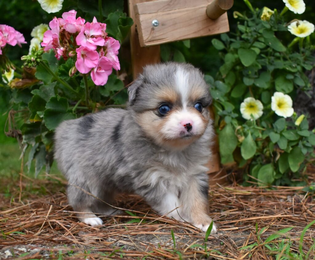 Tiny Toy Size Aussie with blue eyes. Estimated size grown 6 to 8 lbs. ASDR registered Parents. Parents are genetically disease tested full panel clear. Pet only registration due to size. www.peggys-puppies.com or www.facebook.com/peggyspuppiesatgraystone