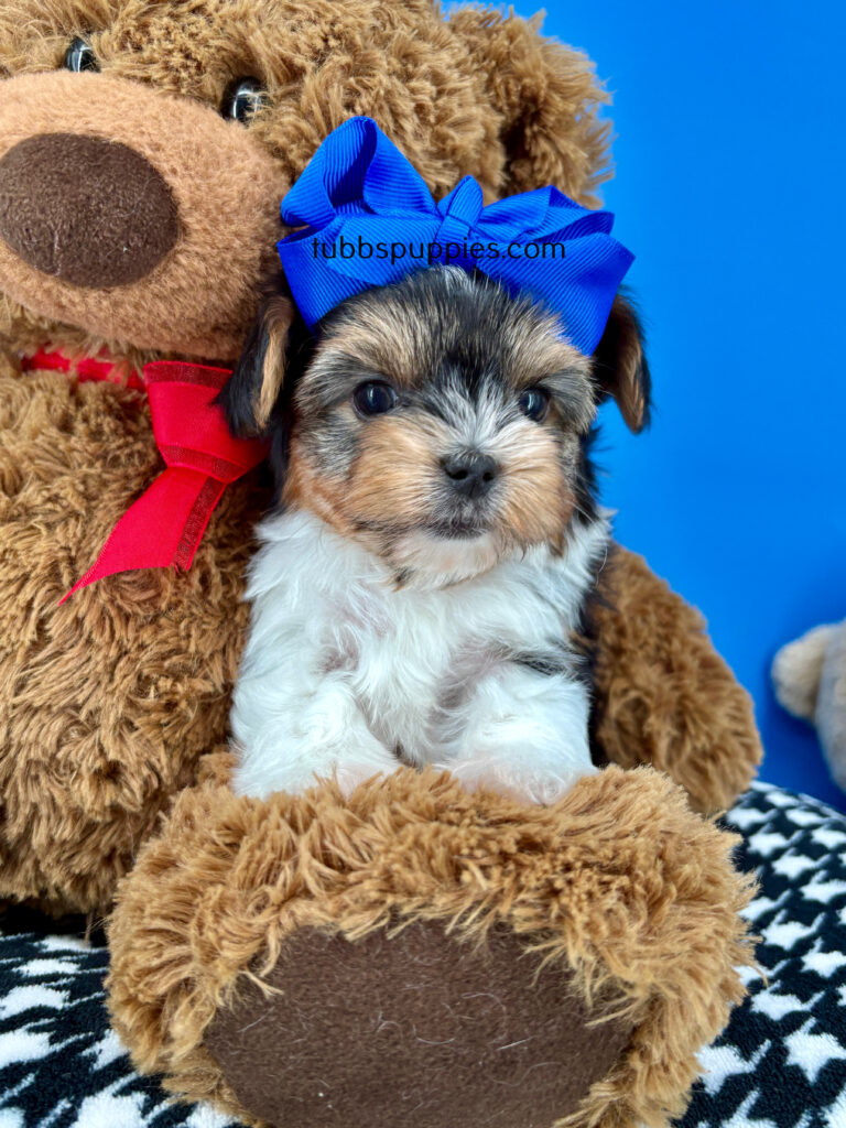 All of our puppies come with a 1 year health guarantee. They are up to date on shots and deworming and go home with a new puppy kit and new puppy care instructions. We start them on potty pads and many go home with the basics in potty training. We are always available to answer any questions and help you with your baby once you have them home. If you are interested in this sweet boy, please visit our website to fill out a questionnaire: https://tubbspuppies.com/puppies-for-sale/