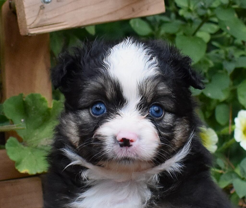 Toy Black Tri female with blue eyes, full panel clear, nad and hsf4-hc clear.