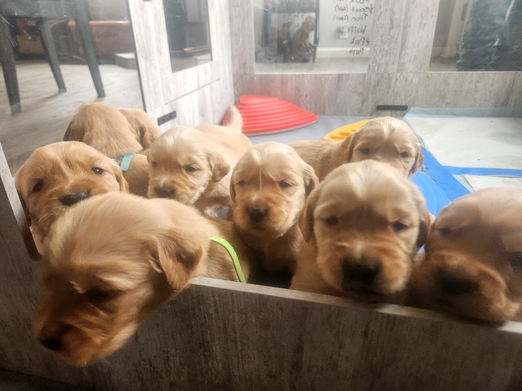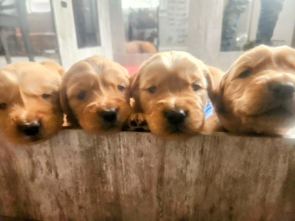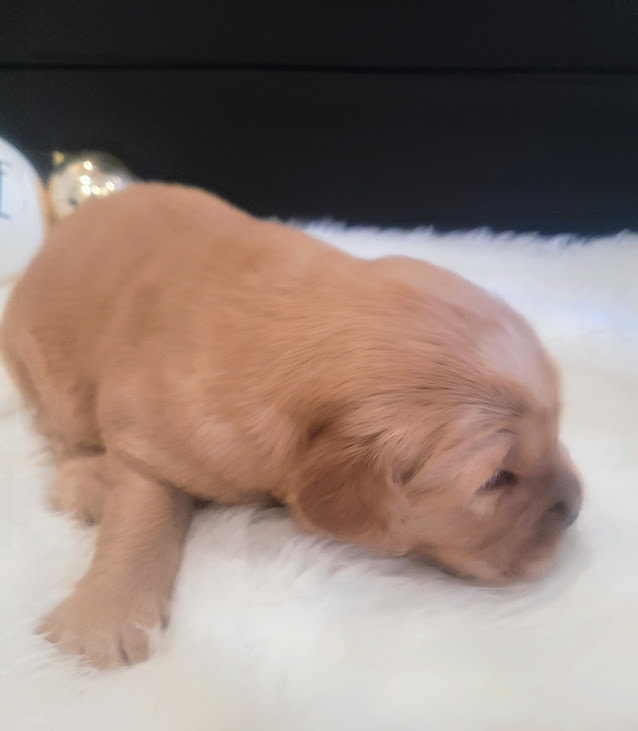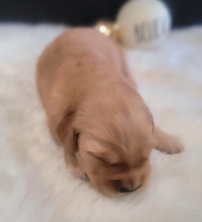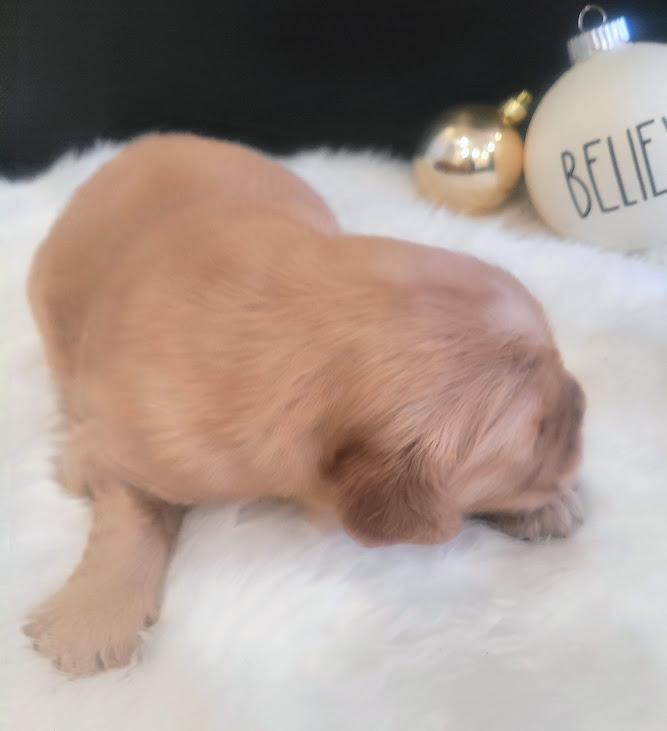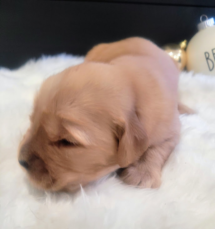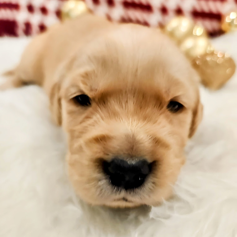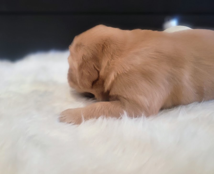 Meet Waffle! An adorable little guy with classic Golden characteristics and charm! He’s been carefully bred with a deep focus on health and temperament, ensuring each pup grows into the loyal, gentle, and well-balanced companion this breed is known for. Every litter is born and raised inside our home, where puppies are surrounded by daily household life, loved-on from day one, and exposed to all the experiences that help shape confident, people-oriented dogs.