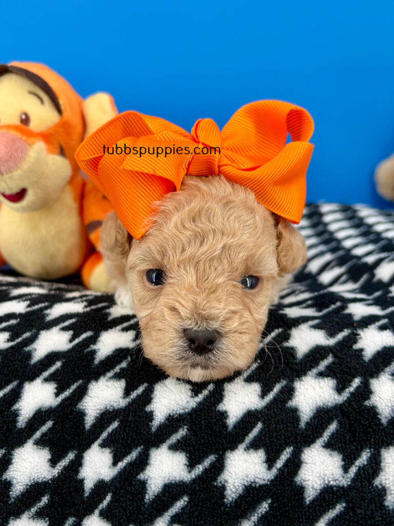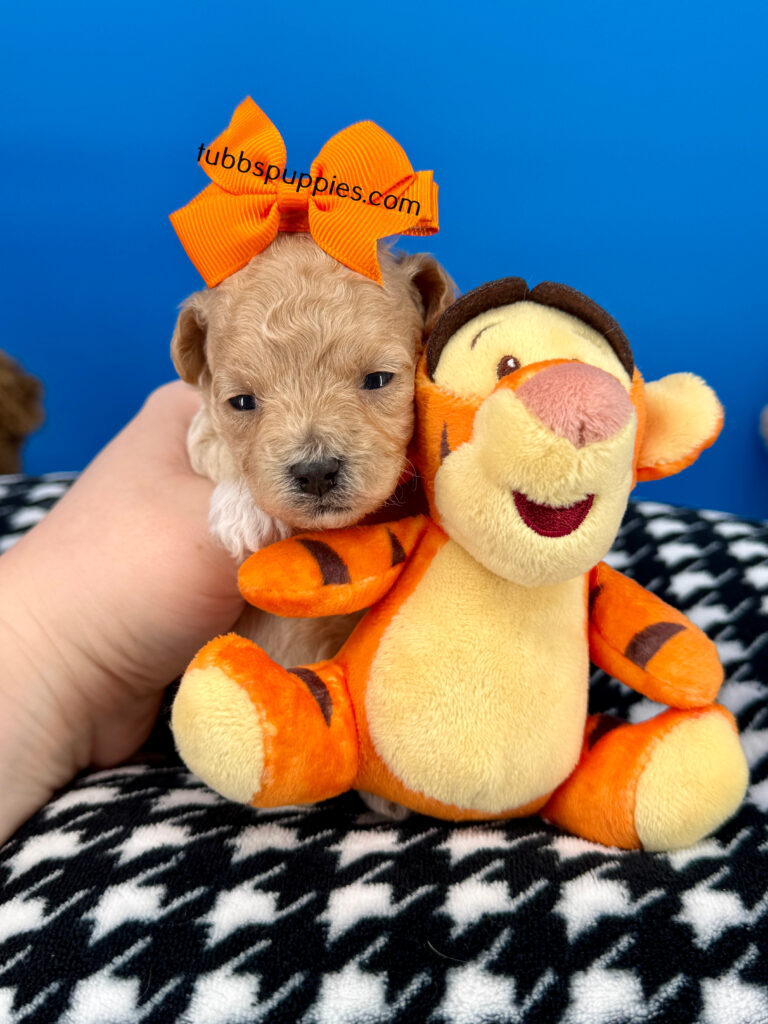 All of our puppies come with a 1 year health guarantee. They are up to date on shots and deworming and go home with a new puppy kit and new puppy care instructions. We start them on potty pads and many go home with the basics in potty training. We are always available to answer any questions and help you with your baby once you have them home. If you are interested in this sweet boy, please visit our website to fill out a questionnaire: https://tubbspuppies.com/puppies-for-sale/