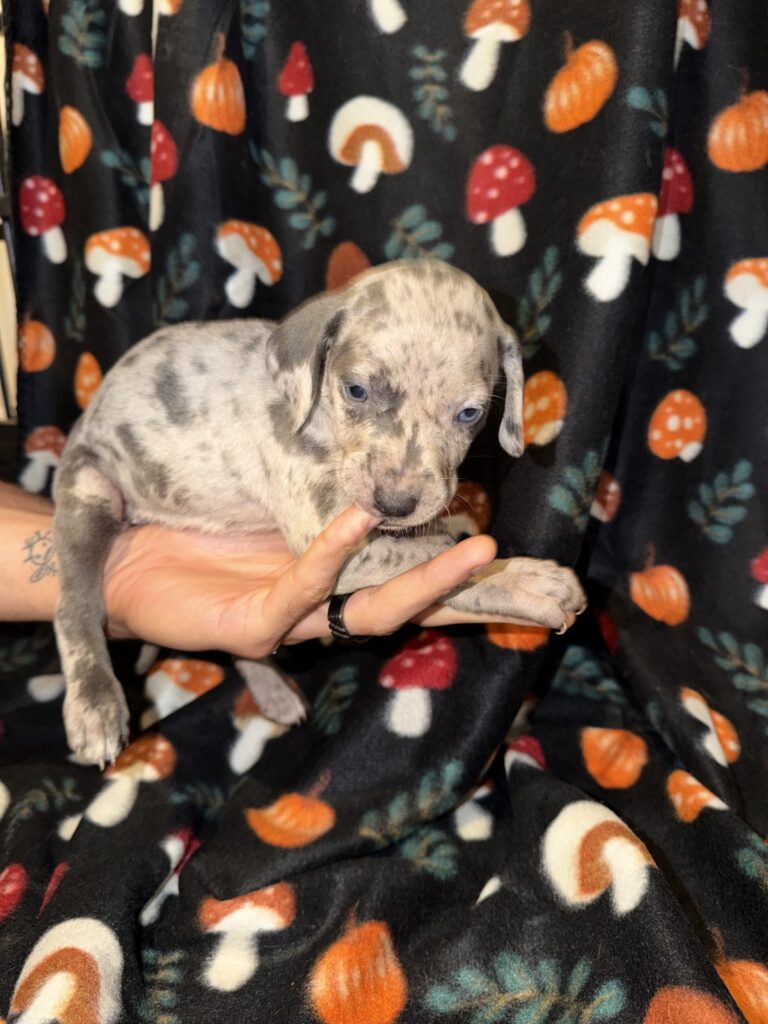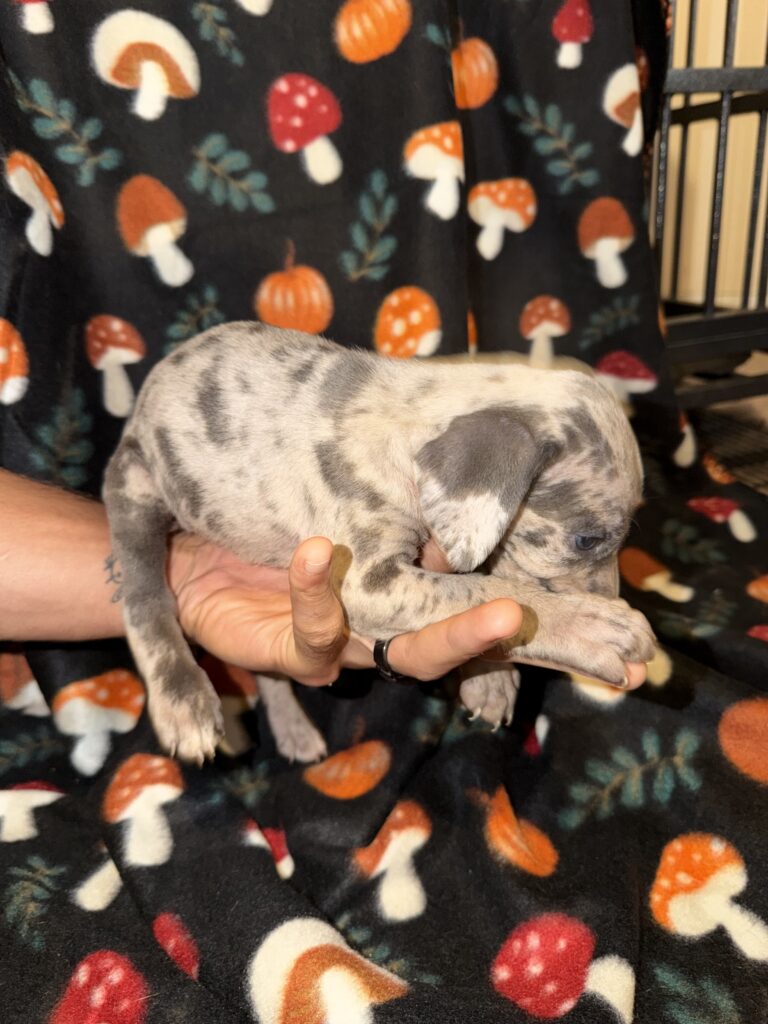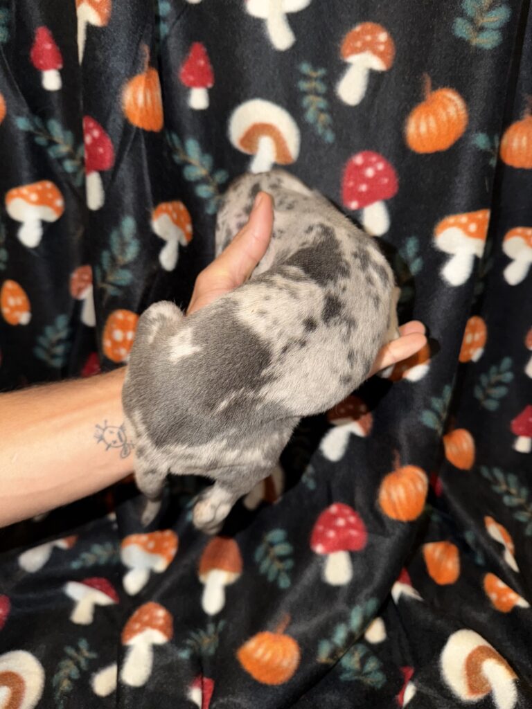 Such a loving girl with a BIG personality! She is white and grey with blue eyes. Should go to a home that is experienced in handling working dogs!