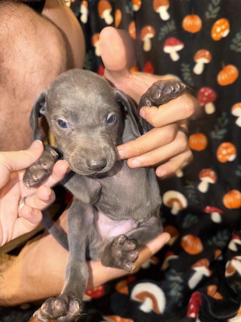 Artemis is a loving boy! He will be quite large as he is one of the largest in the litter. He is kind and has such a sweet personality. He is great with blue eyes.