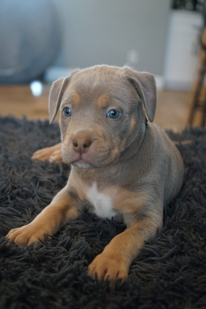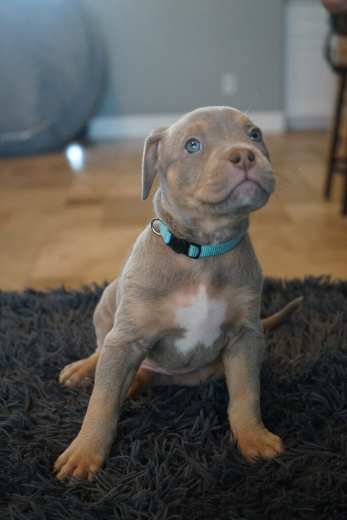 Oak Hills Bullies sky blue collar female. best temperament. Very cuddly! Only female in lilac tri coat.
